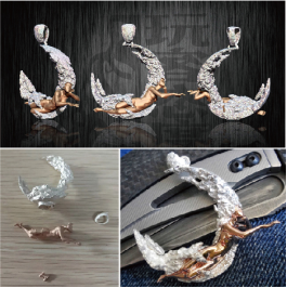 其细腻的笔刷能塑造出各种形态生物的造型和肌理,可以轻易雕刻出皱纹、发丝、鳞片、机理之类的精彩细节,包括这些微小细节的凹凸模型,还可以把这些复杂的细节导出到JCAD、Rhino等我们常用的首饰建模软件中。同时也能匹配3D打印技术,把珠宝电脑首饰建模设计中最复杂、最耗费精力的花鸟鱼虫的造型工作变得简单有趣。