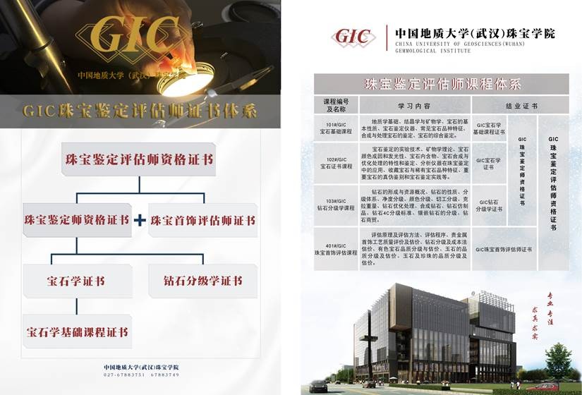 中国地质大学是教育部直属全国重点大学, 是国家批准设立研究生院的大学,是国家“211工程”、国家“双一流”建设高校。学校于2012年8月获批准建设“国家专业技术人员继续教育基地”。珠宝学院(简称GIC)是我国最早的珠宝教育机构,是中国珠宝人才培养的最高学府,被誉为“宝教摇篮”。