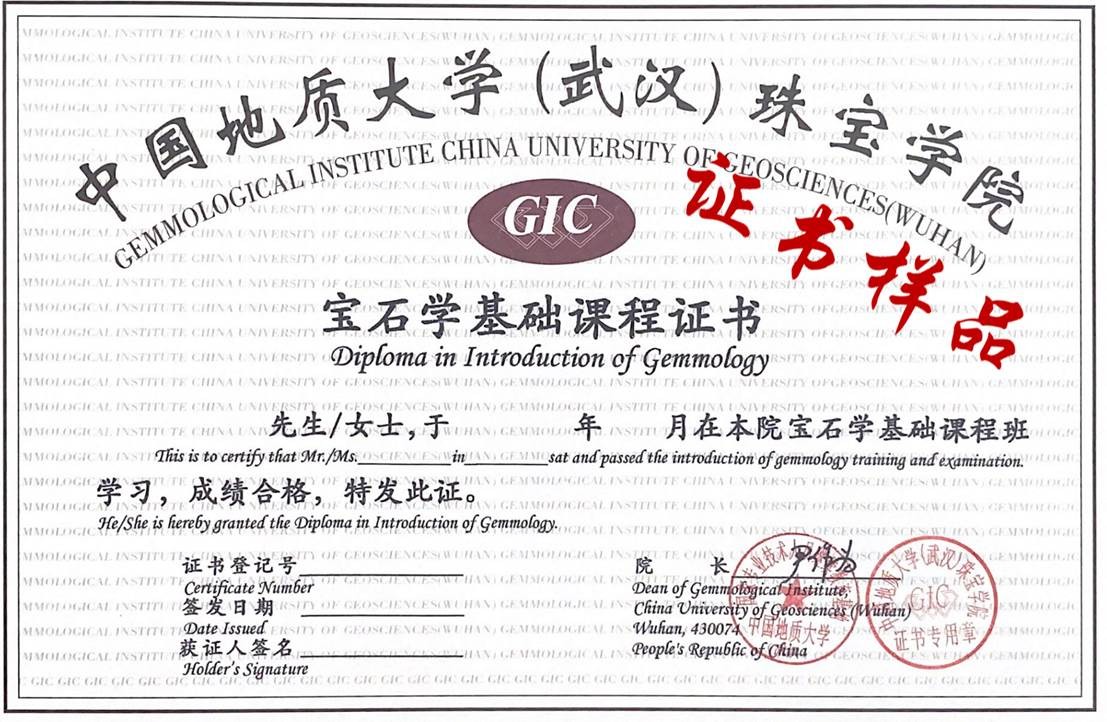 课程结束经理论和实践考试合格者,可获得由中国地质大学(武汉)珠宝学院统一颁发的“GIC宝石学基础课程证书”。