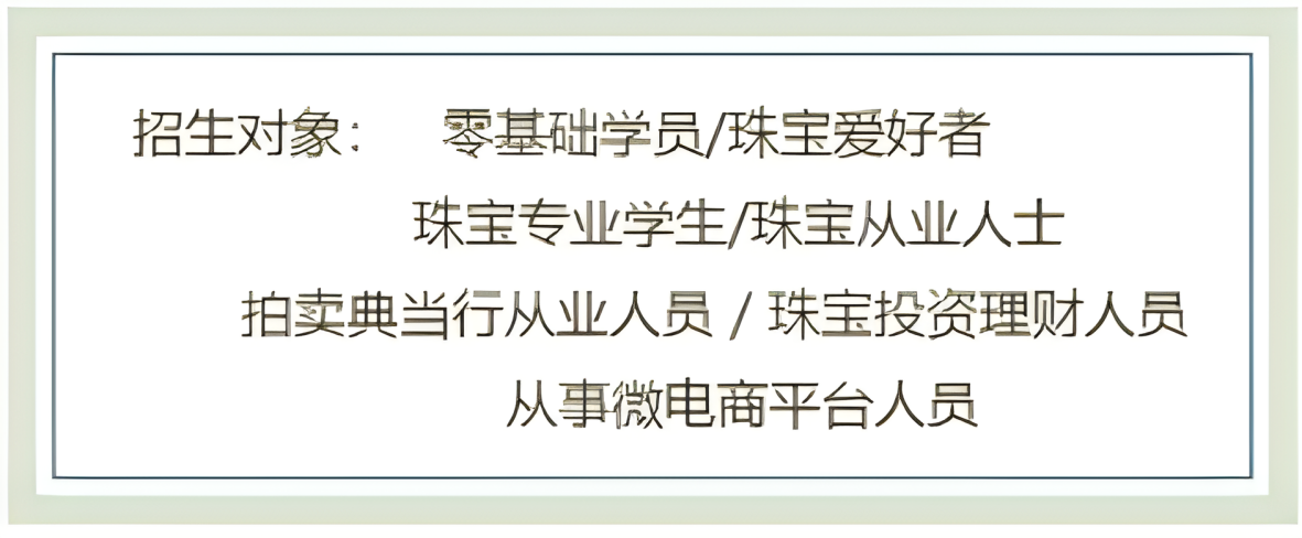 一、招 生 对 象: 零基础学员/珠宝爱好者/珠宝专业学生/珠宝从业人士