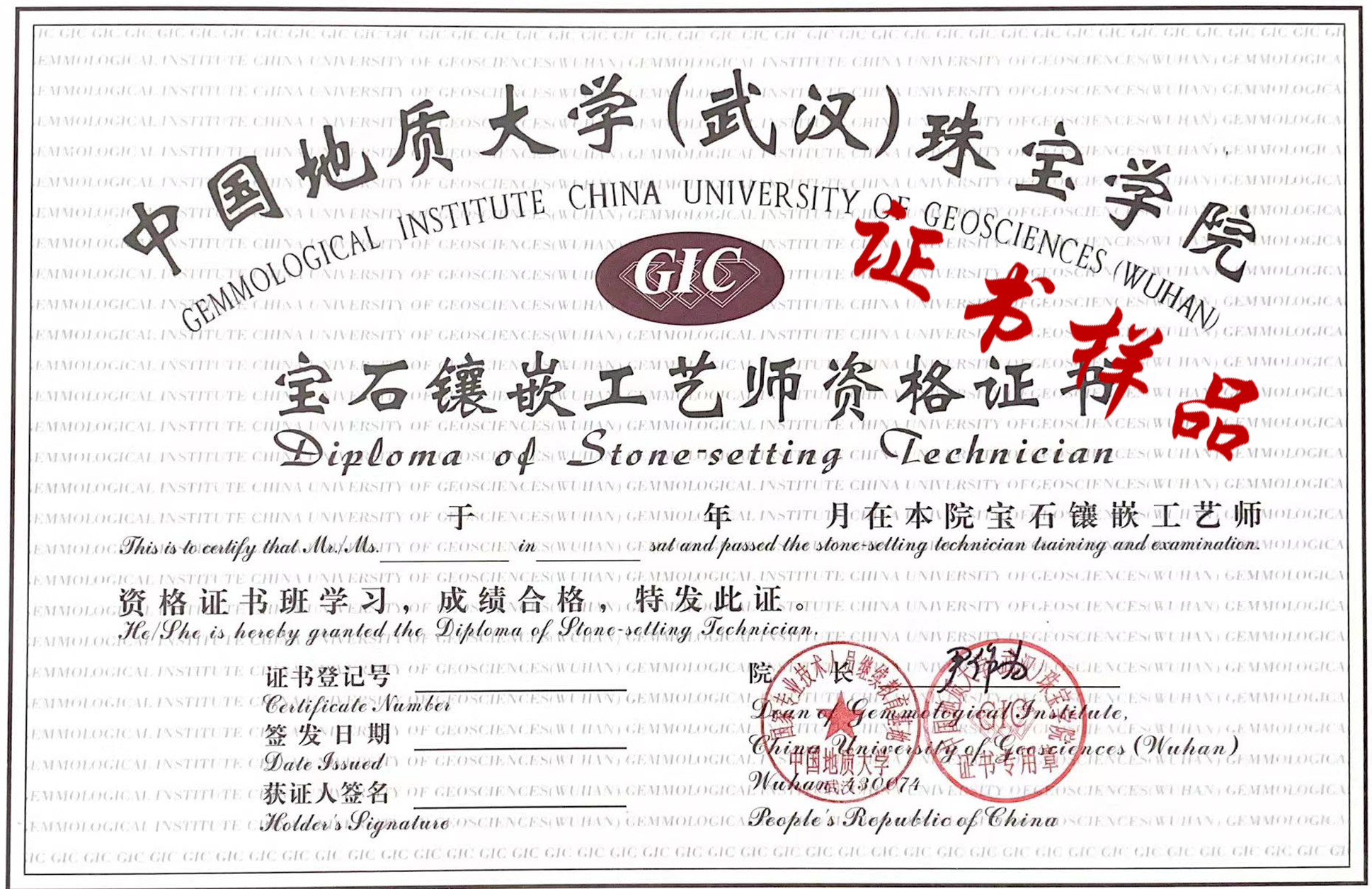 课程结束经考试合格者,能获得由中国地质大学(武汉)珠宝学院统一颁发的“GIC宝石镶嵌工艺师资格证书”。