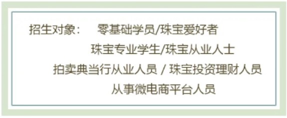 课程采取理论和实践相结合的教学模式,易学易懂。通过系统培训,大幅提升从业者的翡翠鉴赏水平,与客户沟通时更自信、更顺畅、更专业。该课程也受到了翡翠主播们的青睐,学习后能准确拿捏好翡翠的特征,对翡翠的解说更专业、更全面,吸粉更快,是成为一名优秀翡翠主播的捷径,也是想从事翡翠行业新人的必学课程。