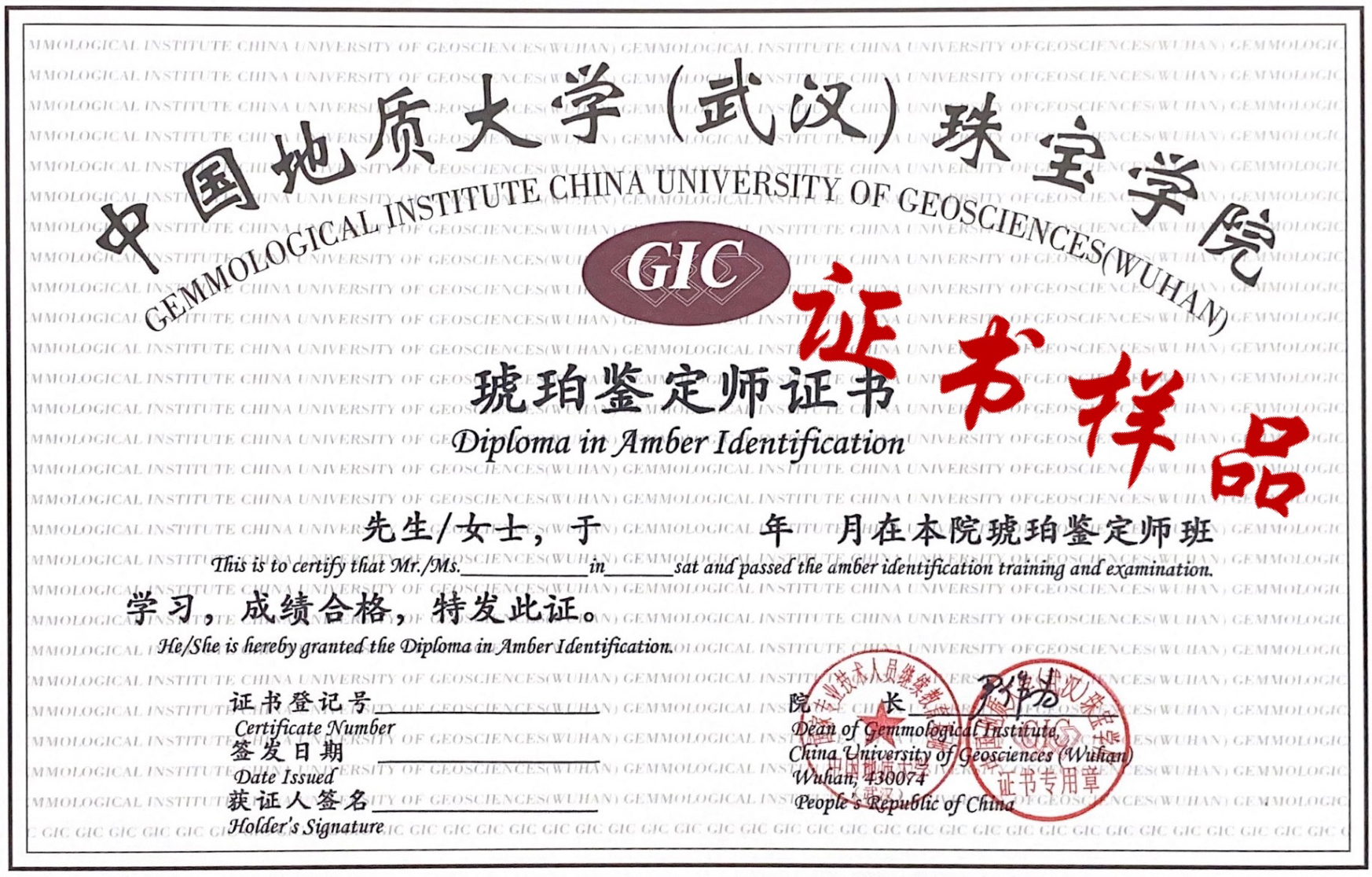 课程考试合格,可获得中国地质大学(武汉)珠宝学院颁发的“GIC琥珀鉴定师证书”。