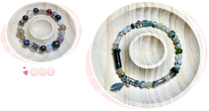 活动物料:课程提供紫水晶、紫锂辉、粉水晶、黄水晶、虎眼石、黑曜石、月光石、朱砂、玉髓、石榴石、贝珠、马蹄螺、猫眼石、金丝玉、东陵玉、青金石、海蓝宝、孔雀石等各种宝石,串珠工具以及各种小配件。