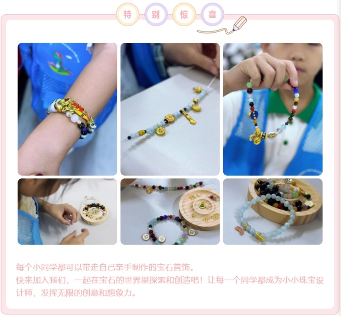 除了制作美丽的串珠,我们还会告诉同学们,怎么照顾好这些珍贵的宝石,让它们一直闪闪发亮!