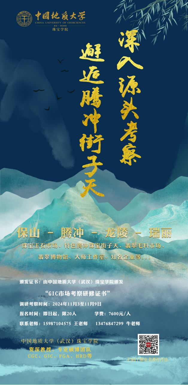 由中国地质大学(武汉)珠宝学院统一颁发“GIC珠宝市场考察研修证书”。