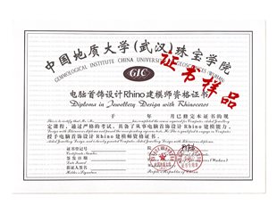 学习期满学生需要通过实训考核并提交合格的3D打印实物作品,合格者可获得由中国地质大学(武汉)珠宝学院统一颁发的《GIC电脑首饰设计Rhino建模师资格证书》。